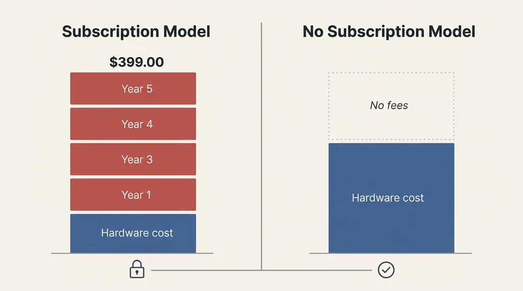 The honest financial comparison between subscription and subscription-free models requires looking at total cost of ownership, not just purchase price.